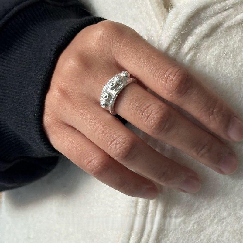 Yi Ethnic Sterling Silver Ring: Minimalist Tribal Design with Handcrafted Details