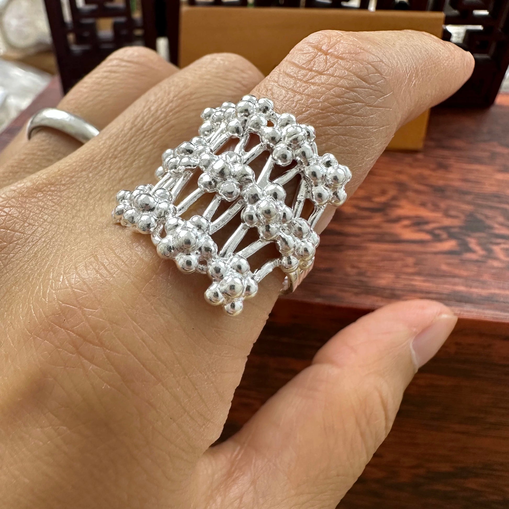 Handcrafted Silver Berries Cluster Ring: Timeless Elegance with Ethnic Charm